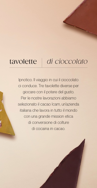 Per il cioccolato, invece, la linea diventa un vortice seducente, simbolo di un momento di consumo più intimo e istintivo.